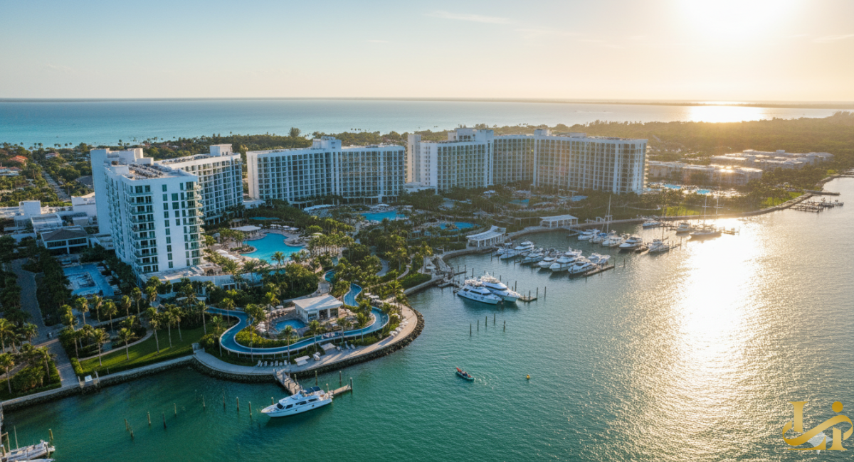 Its contemporary design, towering pools, and vibrant marina views make it a beacon for those craving elegance without the bustle of typical Florida beach crowds.